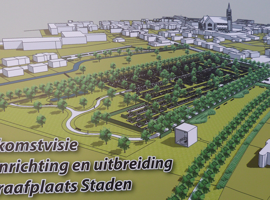 De stationssite in centrum Staden was ooit een plaats van heel wat activiteit.Reizigersverkeer, vervoer van bieten en aanvoer. Het stationsgebouw is de enige overgebleven getuige. In diezelfde omgeving was er ook de brouwerij. Het containerpark nam de plaats in van heel wat economische activiteit. Maar gaat nu ook weg. Toekomstplannen. Een park kan een centrale ontmoetingsplaats worden. De spoorwegbedding kan verder uitgebouwd worden als verbindingsweg. De omgeving om en rond de begraafplaats kunnen een groene long worden mits de nodige ingrepen. Een aanpassing aan de uitbouw van de begraafplaats in de Carninstraat is aan de orde. Vandaar de oproep om mee te helpen denken aan de mogelijkheden die deze ganse site kan bieden naar ontwikkeling inzake groen – ontspanning – bewoning – gemeenschapsdoeleinden – rustparken – vrijwaren en herwaarderen van uitzicht …. Het wordt één van de belangrijkste ingrepen in de komende jaren in het centrum van Staden.